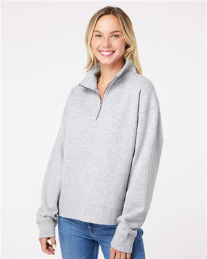 MV Sport W22713 Women's Sueded Fleece Quarter-Zip Sweatshirt - Heather Grey