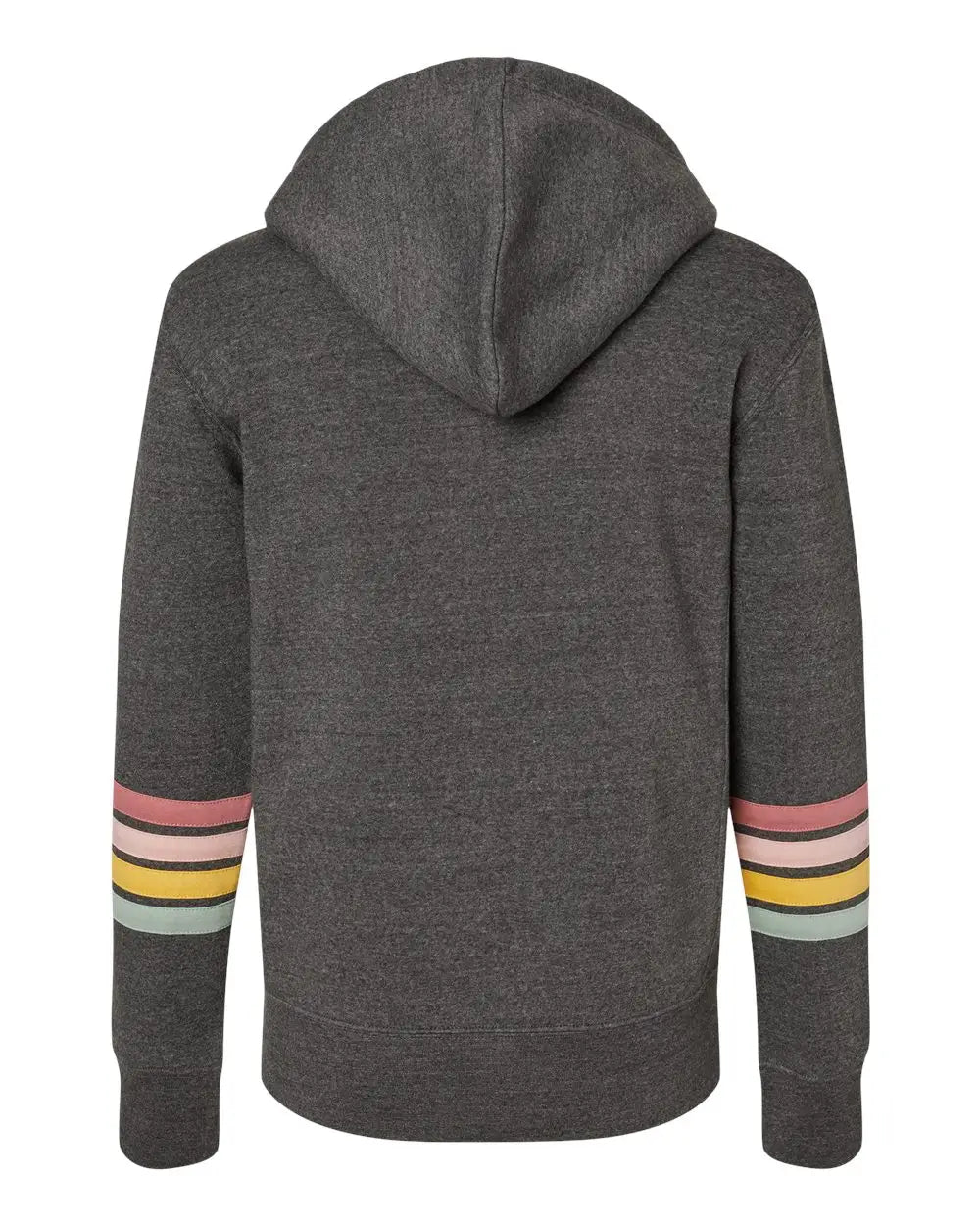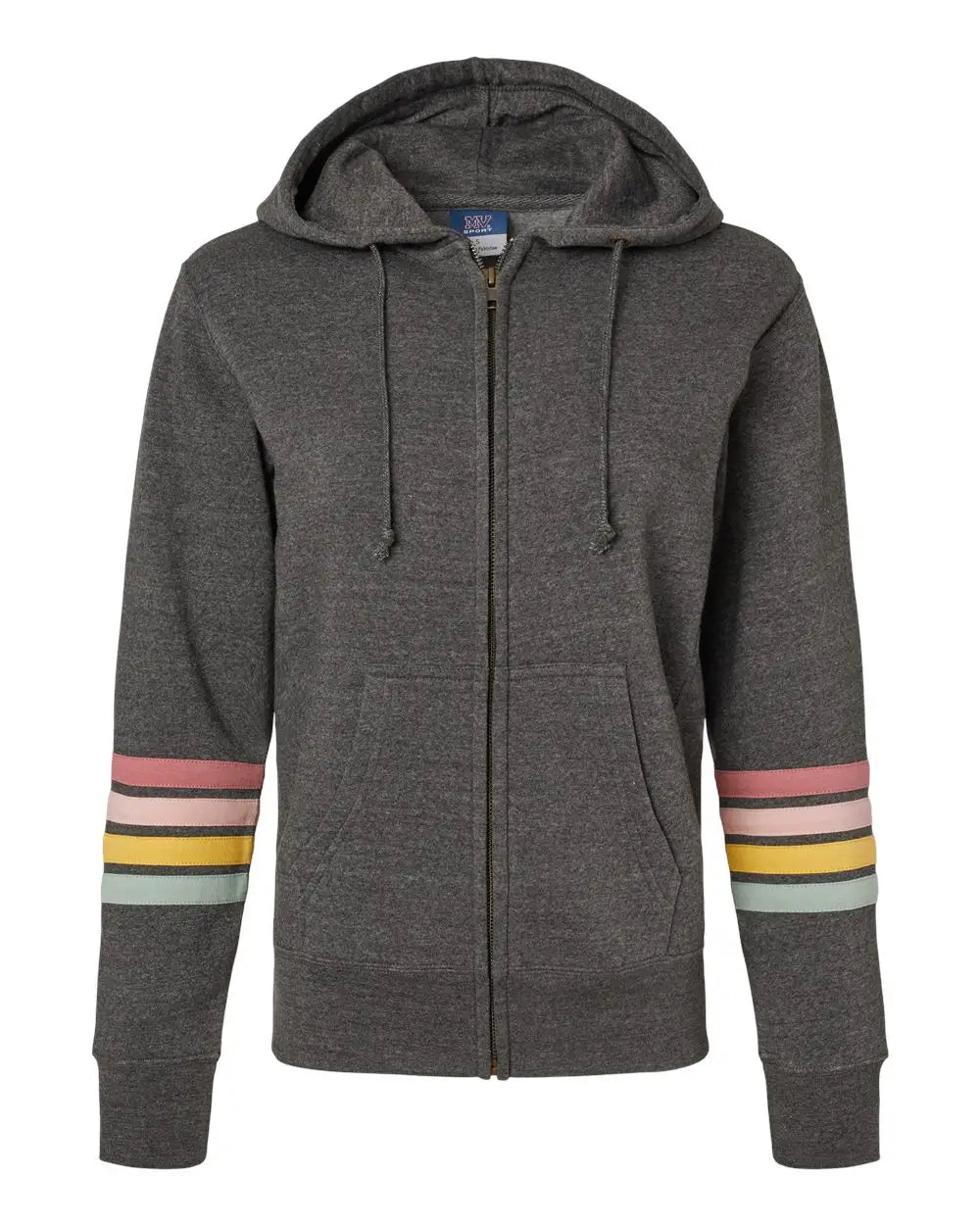 MV Sport W22732 Women's Striped Sleeves Full-Zip Hooded Sweatshirt - Charcoal