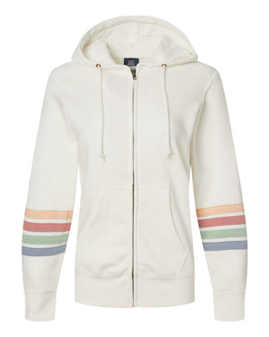 MV Sport W22732 Women's Striped Sleeves Full-Zip Hooded Sweatshirt - Ivory