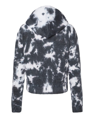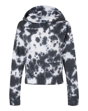 MV Sport W23718 Women's Sueded Fleece Tie-Dyed Crop Hooded Sweatshirt - Charcoal