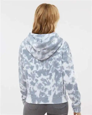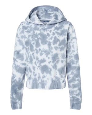 MV Sport W23718 Women's Sueded Fleece Tie-Dyed Crop Hooded Sweatshirt - Stonewash