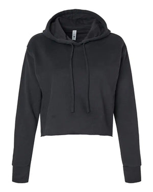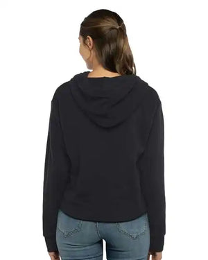 Next Level 9384 Women's Laguna Sueded Raw Edge Crop Hoodie - Black