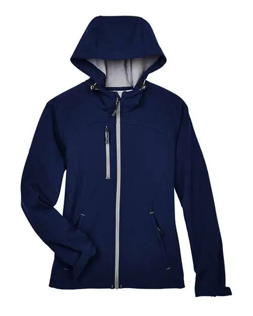 North End 78166 Women's Prospect Two-Layer Fleece Bonded Soft Shell Hooded Jacket - Classic Navy