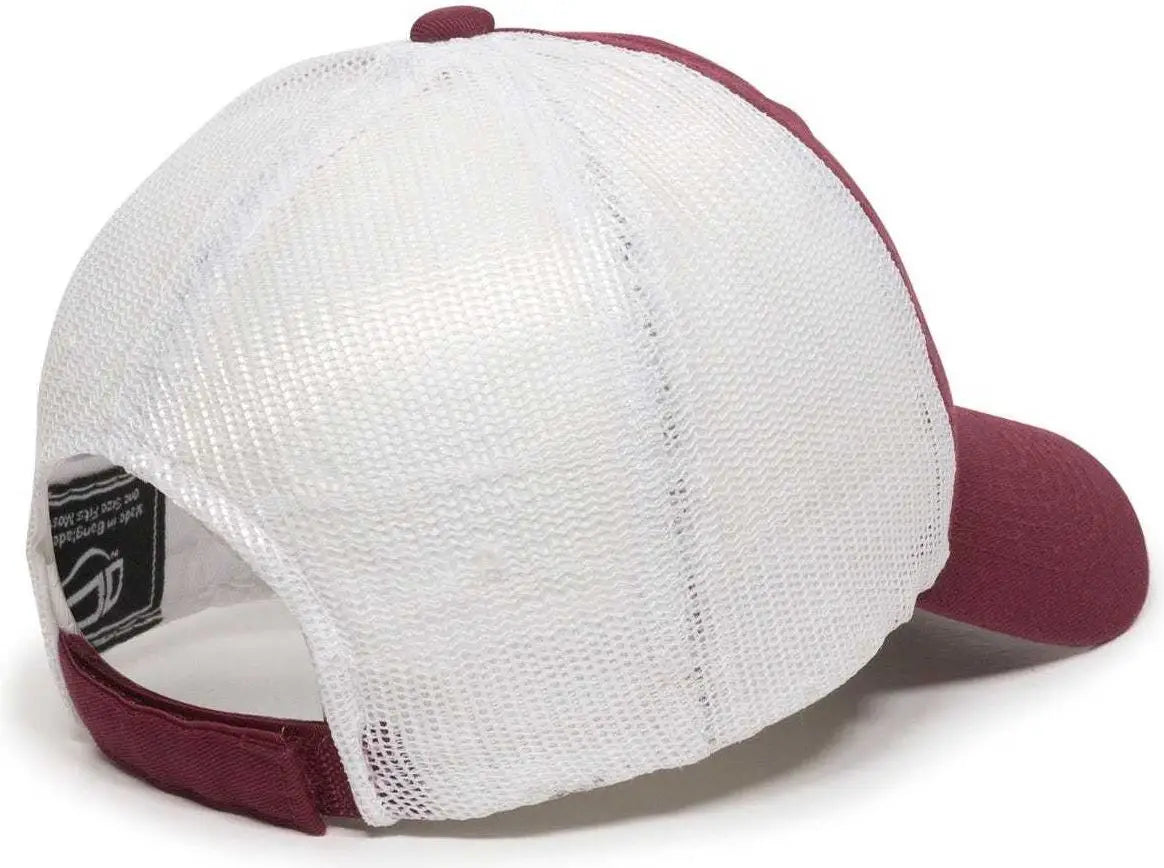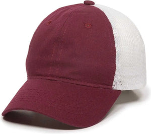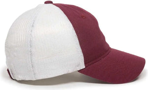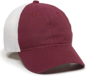 OC Sports FWT-130 Garment Wash Mesh Back Baseball Cap - Burgundy White