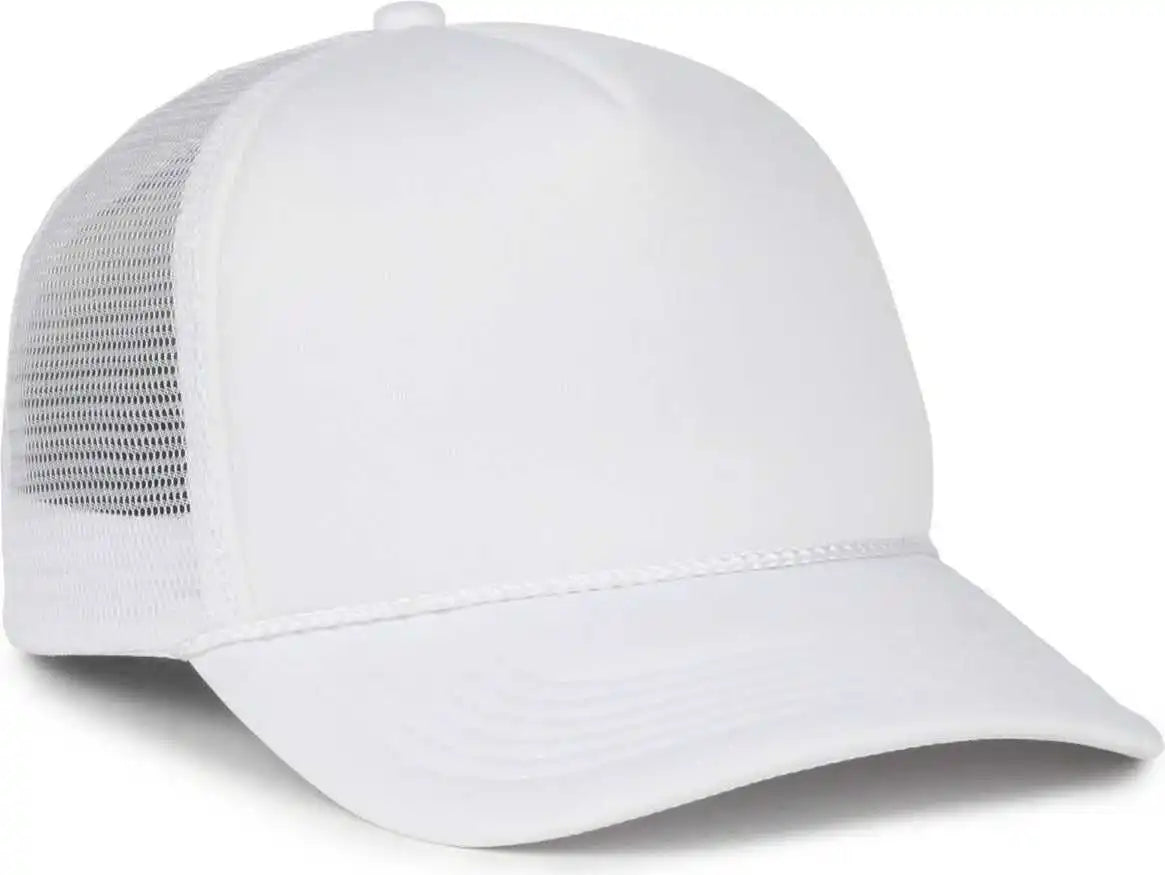 OC Sports OCFOAM 5 Panel Foam Mesh Trucker with Cord Cap - White White