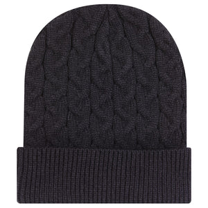 Otto 82-1 12" Cable Knit Beanie w/ Rib Knit Cuff - Black
