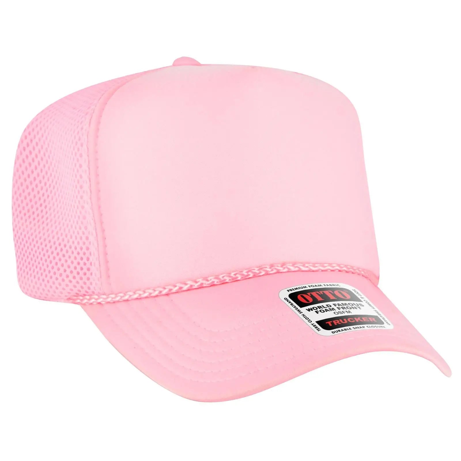 OTTO 39-166 5 Panel High Crown Air Mesh Back Trucker Cap - Soft Pink