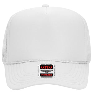OTTO 39-165 5 Panel High Crown Mesh Back Trucker Cap - White
