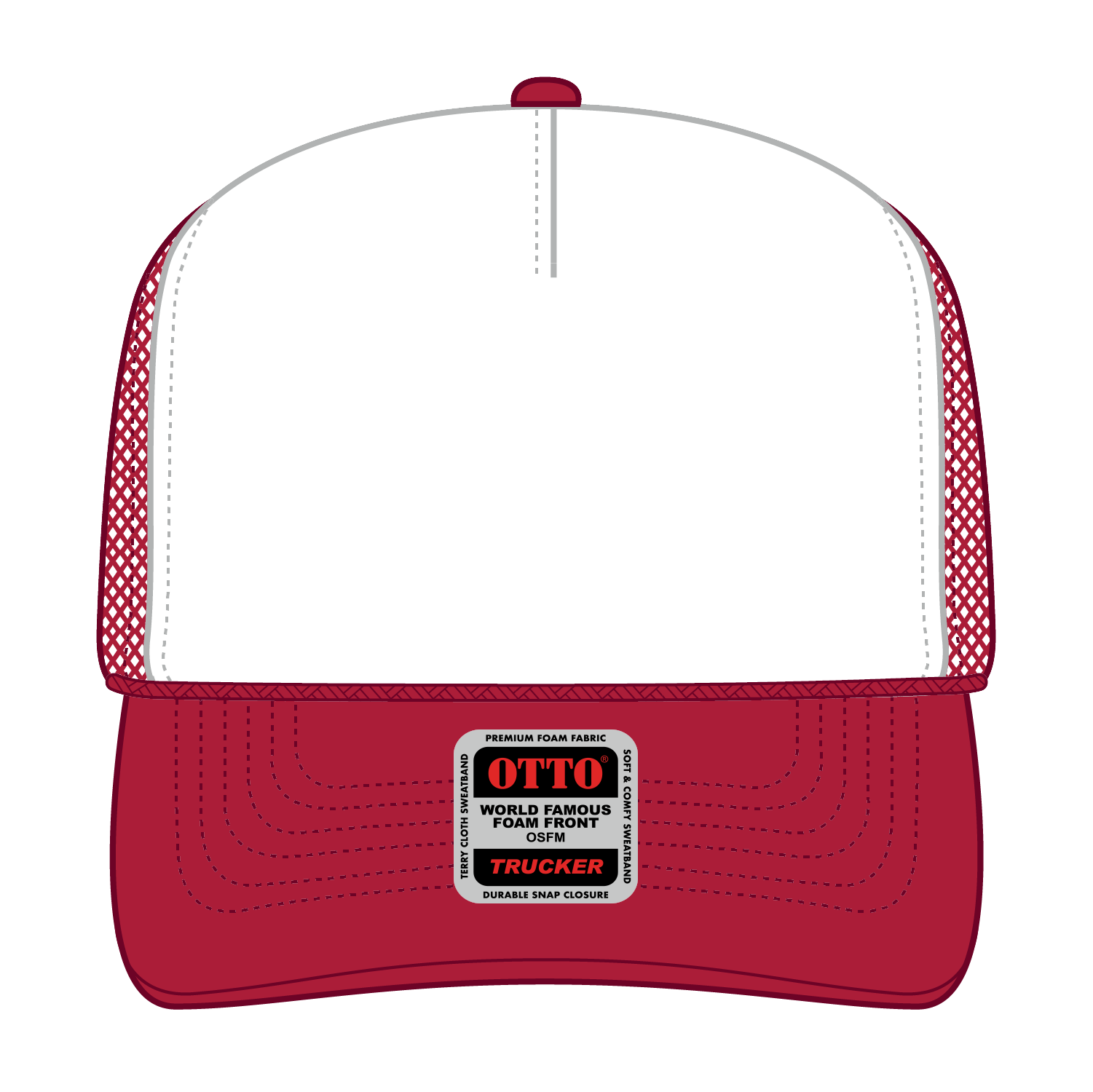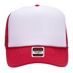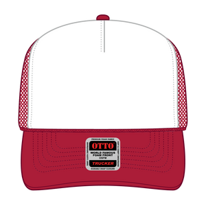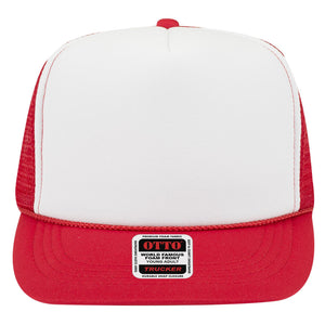 OTTO 39-165 5 Panel High Crown Mesh Back Trucker Cap - Red/Wht/Red