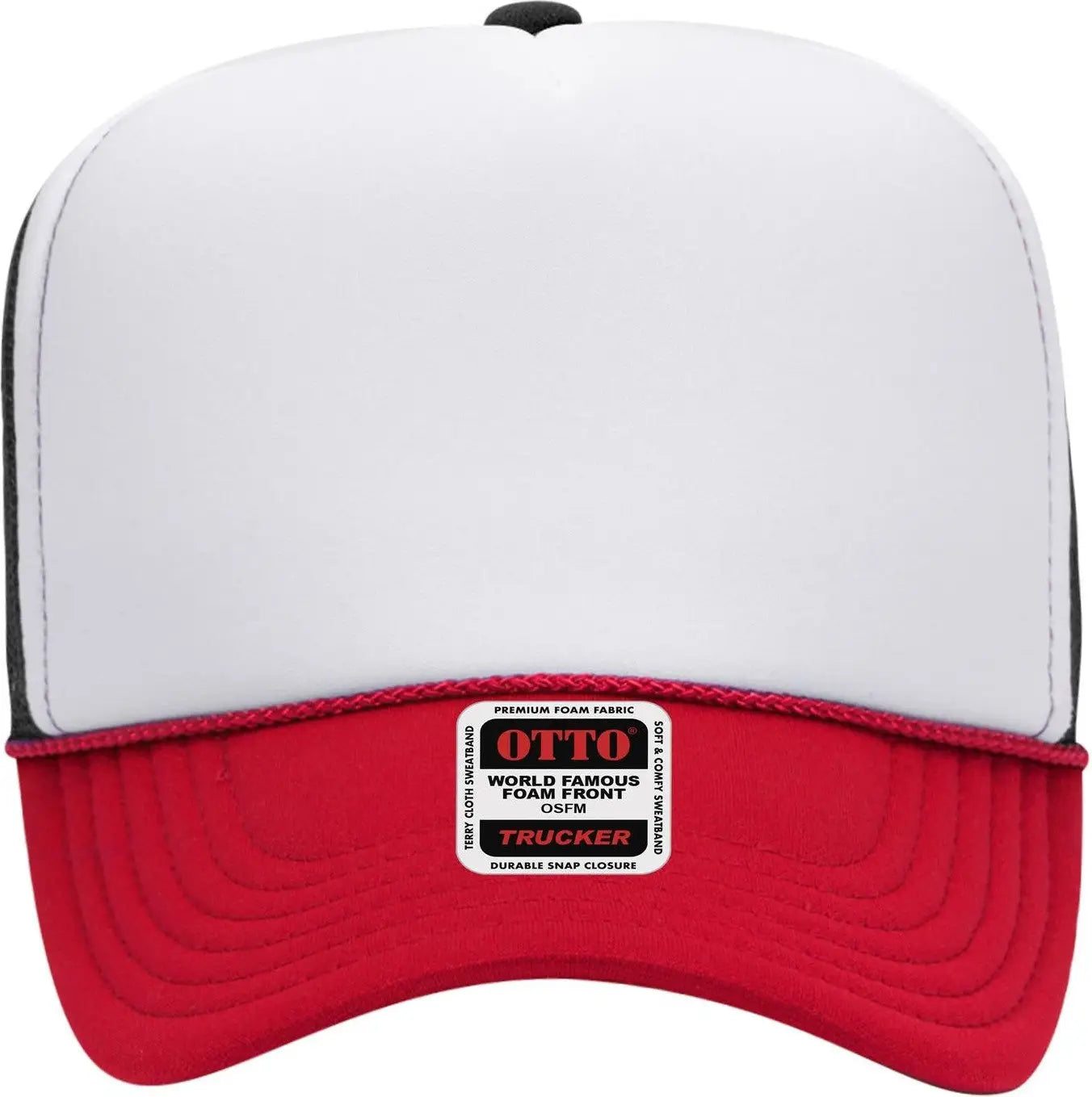 OTTO 39-165 5 Panel High Crown Mesh Back Trucker Cap - Red/Wht/Blk