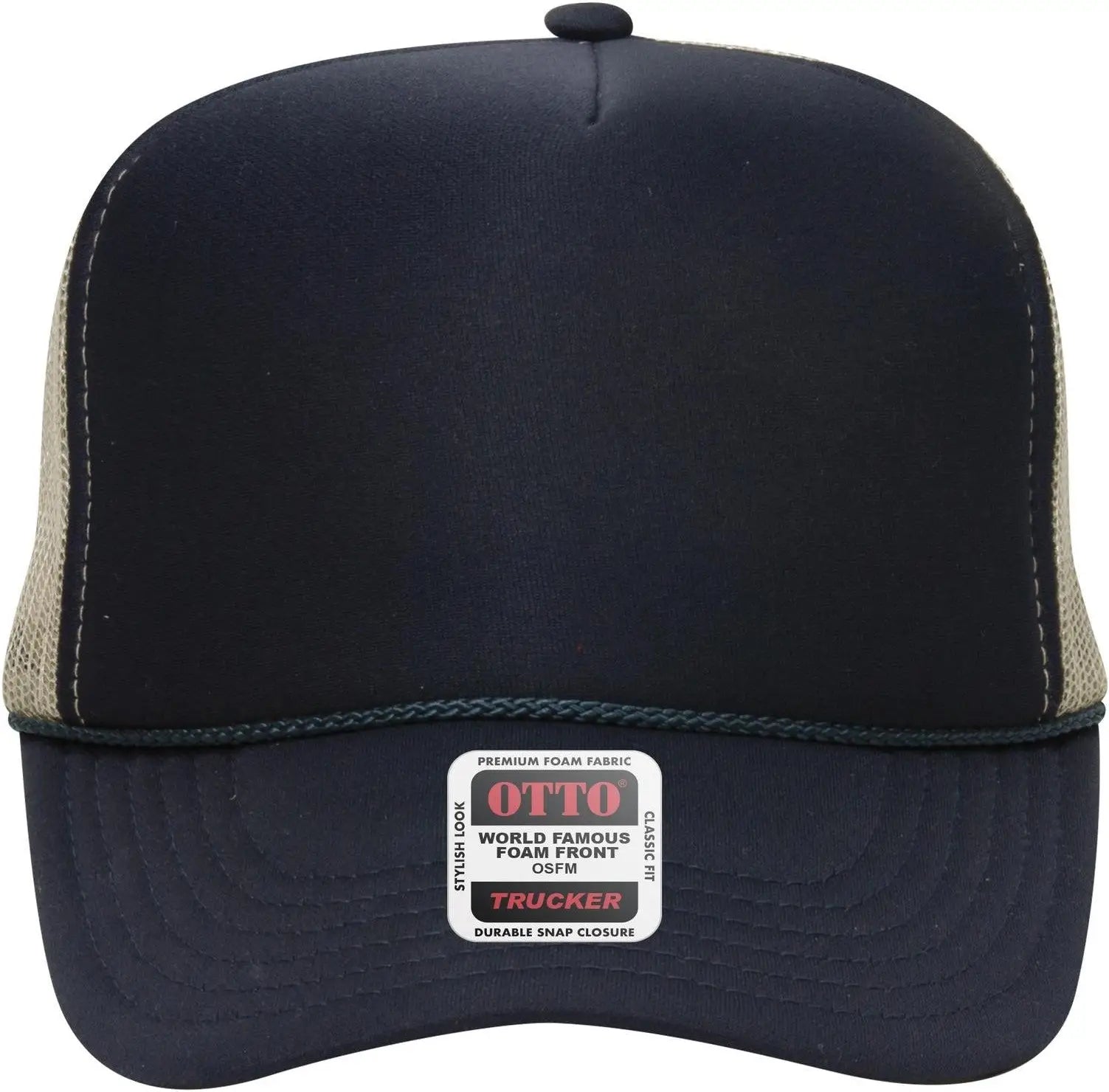 OTTO 39-165 5 Panel High Crown Mesh Back Trucker Cap - Nvy/Nvy/Kha