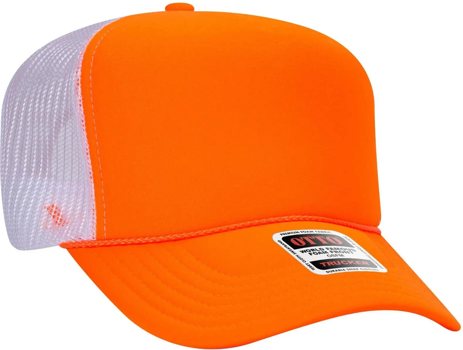 OTTO 39-165 5 Panel High Crown Mesh Back Trucker Cap - N Org/N Org/Wht