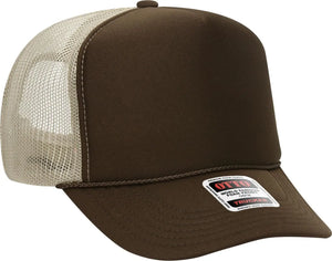OTTO 39-165 5 Panel High Crown Mesh Back Trucker Cap - Dk.Brn/Dk.Brn/Kha