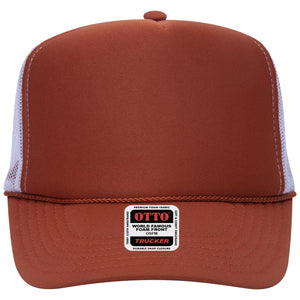 OTTO 39-165 5 Panel High Crown Mesh Back Trucker Cap - Tx Org/Tx Org/Wht