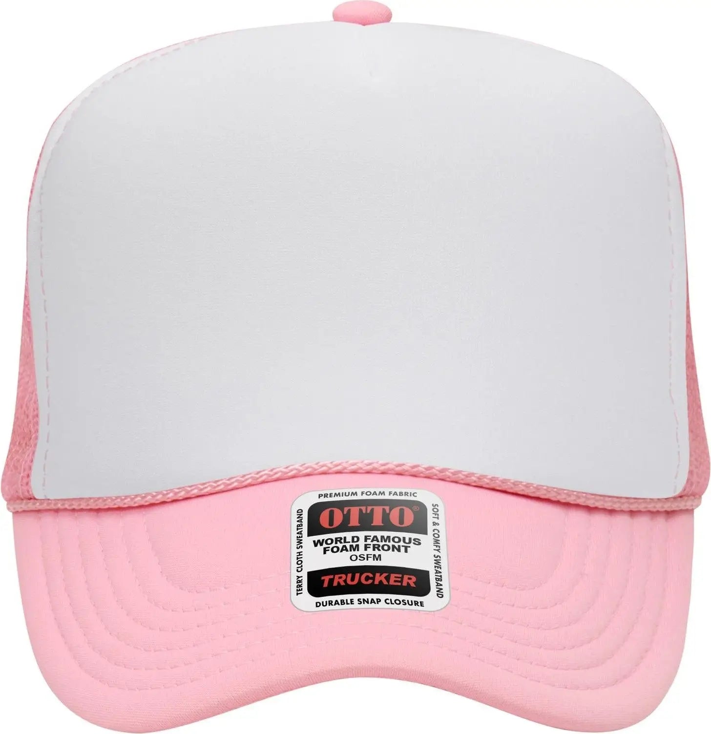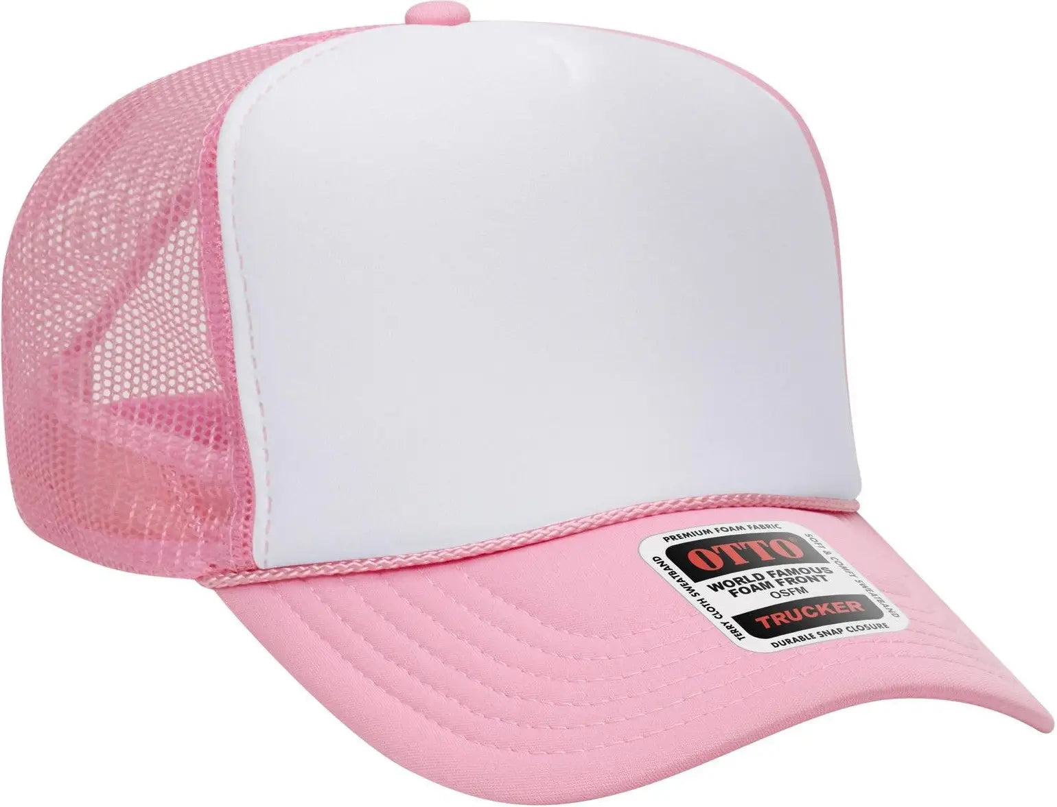OTTO 39-165 5 Panel High Crown Mesh Back Trucker Cap - Pnk/Wht/Pnk