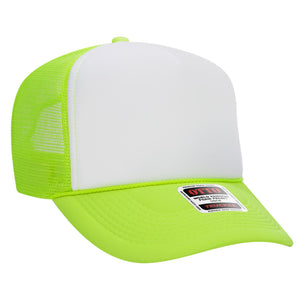 OTTO 39-165 5 Panel High Crown Mesh Back Trucker Cap - N.Grn/Wht/N.Grn