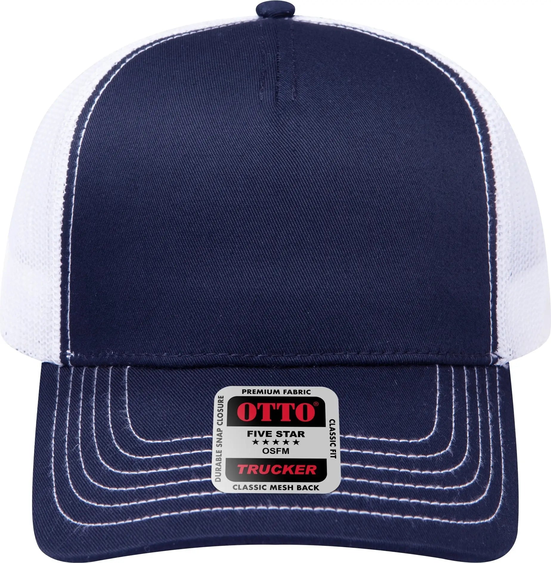 OTTO 102-664 5 Panel Low Profile Mesh Back Trucker Cap - Nvy/Nvy/Wht