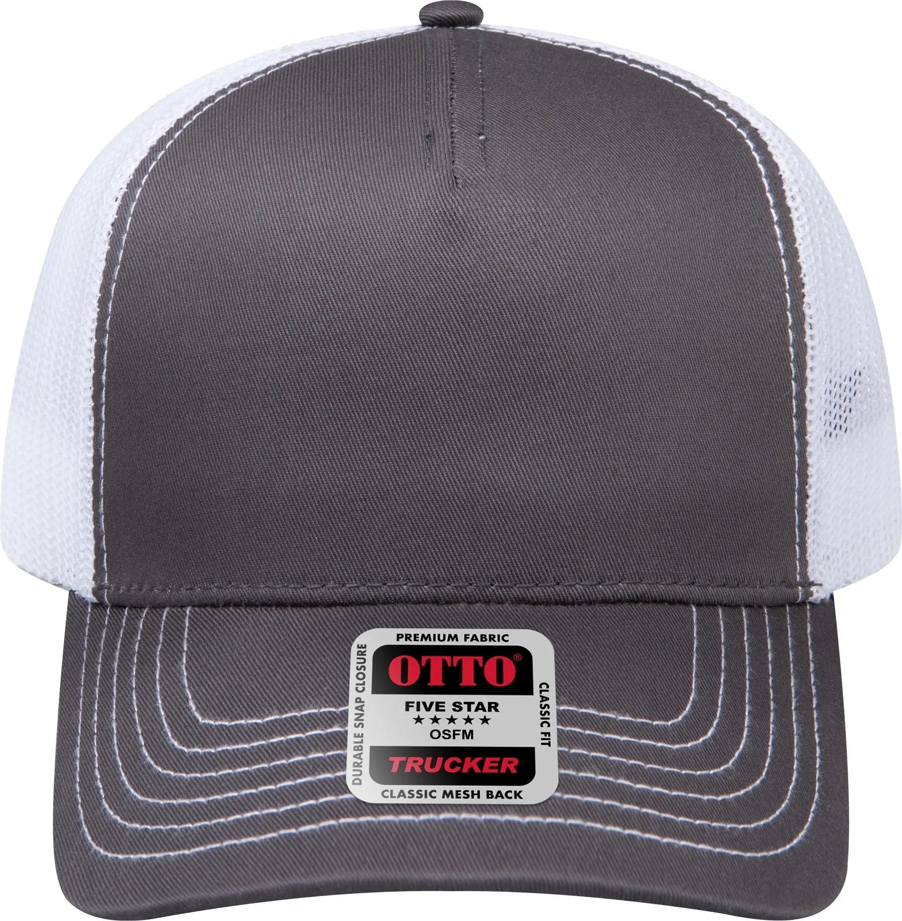 OTTO 102-664 5 Panel Low Profile Mesh Back Trucker Cap - Ch.Gry/Ch.Gry/Wht