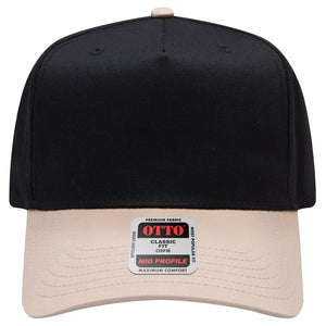 OTTO 31-069 5 Panel Mid Profile Baseball Cap - Kha/Blk
