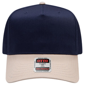 OTTO 31-069 5 Panel Mid Profile Baseball Cap - Kha/Nvy