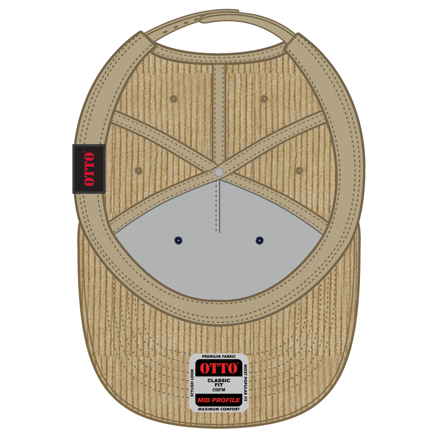 OTTO 31-2 5 Panel Mid Profile Corduroy Baseball Cap - Khk