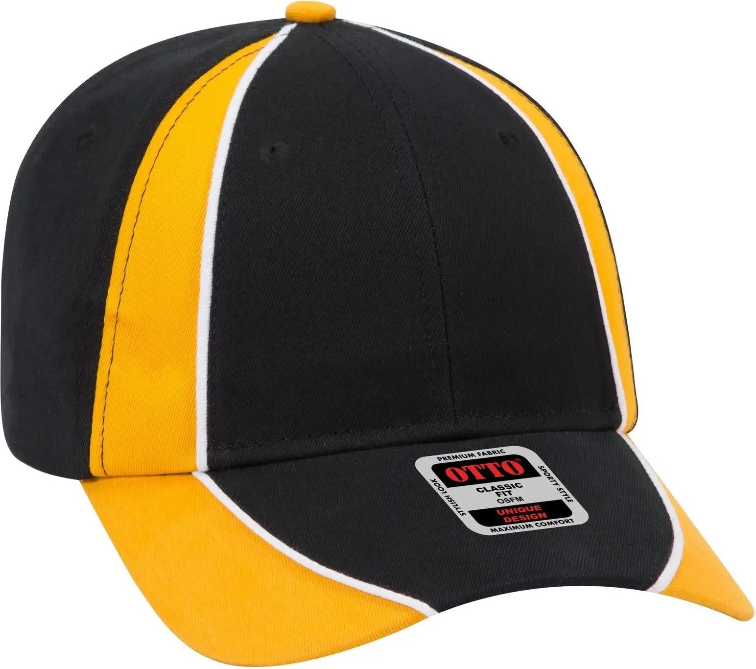 OTTO 19-701 6 Panel Low Profile Baseball Cap - Blk/Gld/Wht