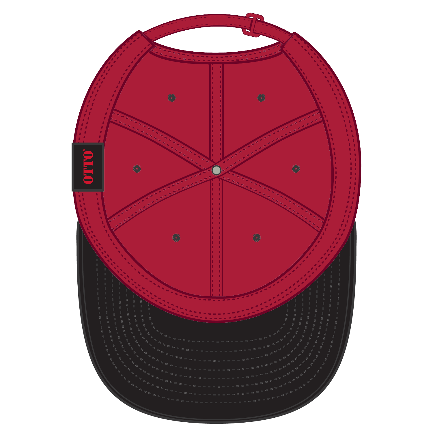 OTTO 25-023 6 Panel Low Profile Baseball Cap - Blk/Red