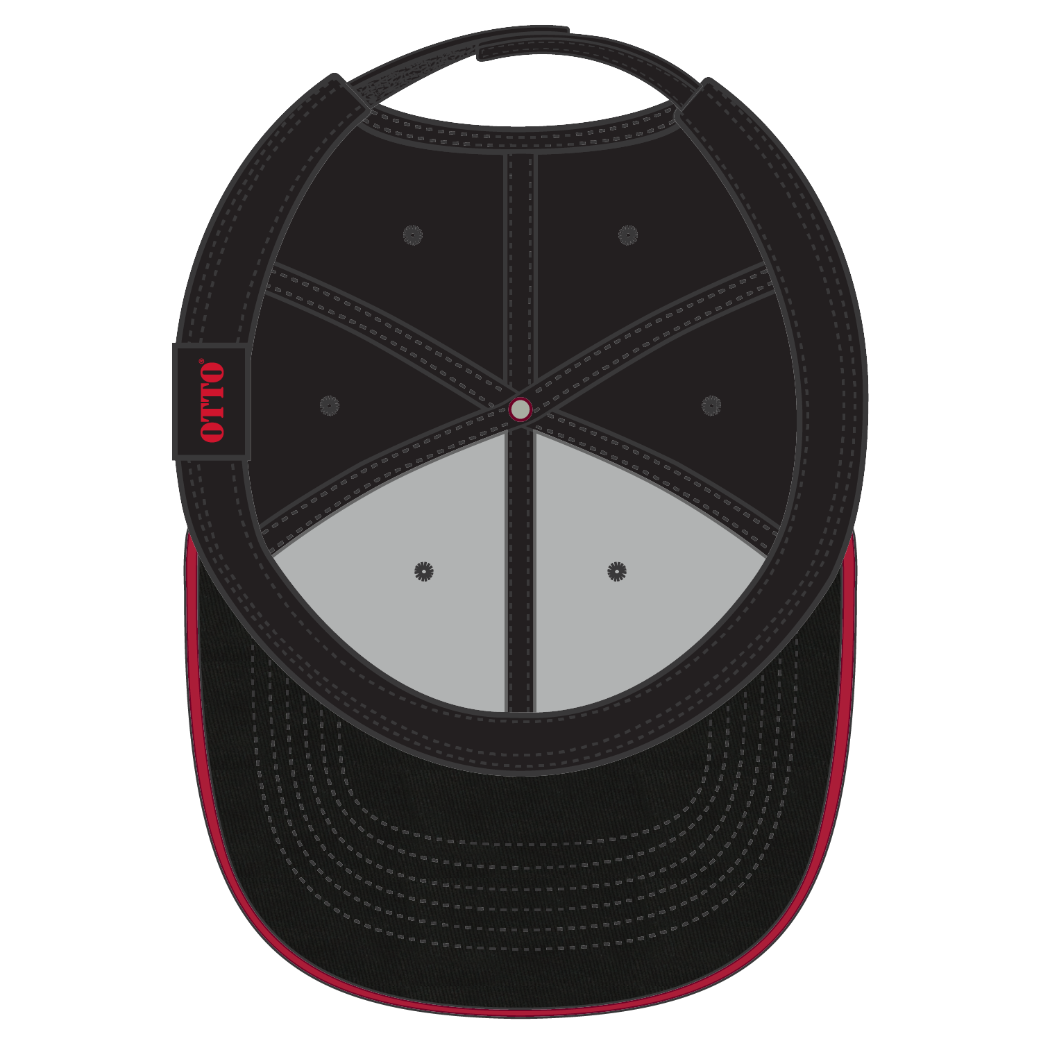 OTTO 23-434 6 Panel Low Profile Baseball Cap - Blk/Blk/Red