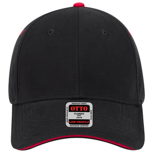 OTTO 23-370 6 Panel Low Profile Baseball Cap - Blk/Blk/Red