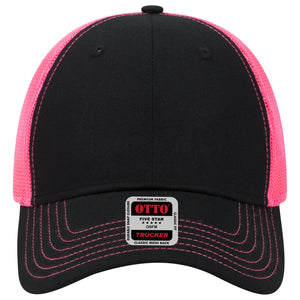 OTTO 83-1239 6 Panel Low Profile Mesh Back Trucker Cap - Blk/Blk/N.Pnk