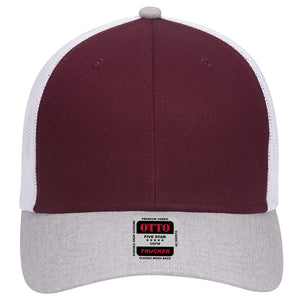 OTTO 83-1239 6 Panel Low Profile Mesh Back Trucker Cap - HeatherGray/Maroon/White