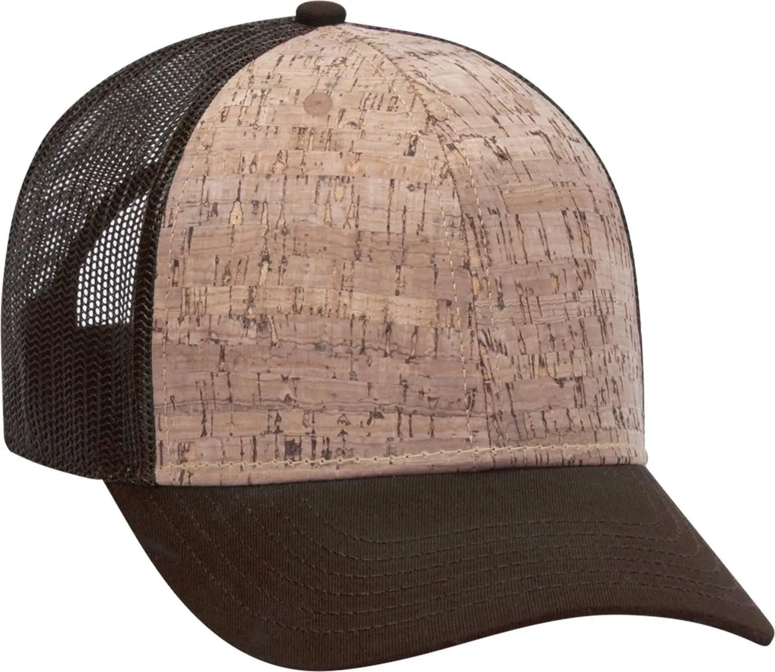 OTTO 83-1212 6 Panel Low Profile Mesh Back Trucker Cap - D.Brn/Cork/D.Brn