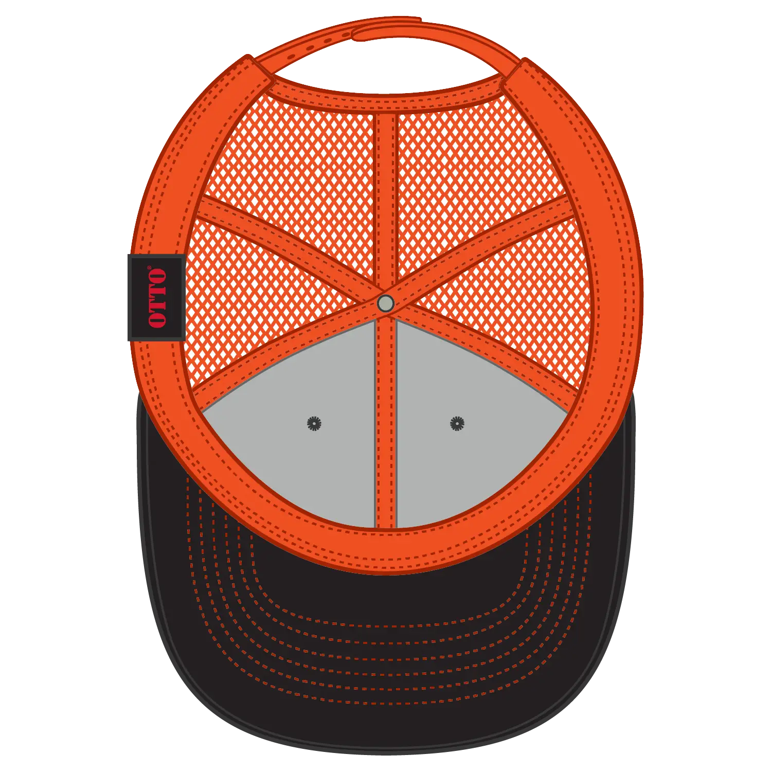 OTTO 112-1 6 Panel Mid Profile Mesh Back Trucker Cap - Blk/Blk/N Org