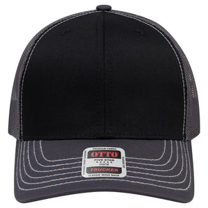 OTTO 112-1 6 Panel Mid Profile Mesh Back Trucker Cap - Ch.Gry/Blk/Ch.Gry