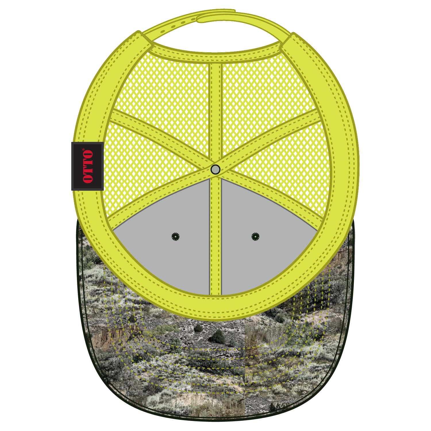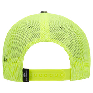 OTTO 171-1293 Mossy Oak Camouflage 6 Panel Low Profile Mesh Back Trucker Cap - Mountain Country Range/N.Ylw