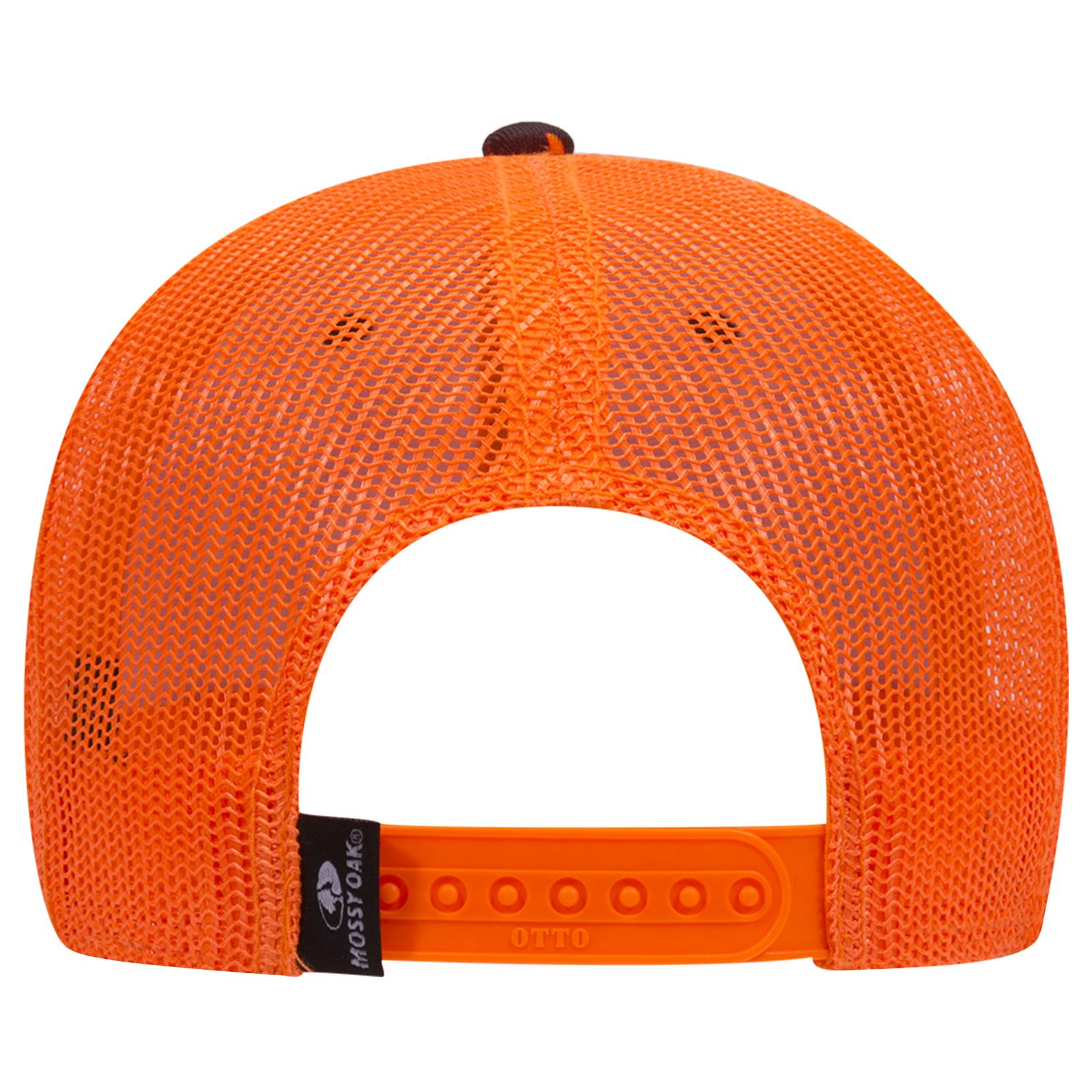 OTTO 171-1293 Mossy Oak Camouflage 6 Panel Low Profile Mesh Back Trucker Cap - Blaze/N.Org