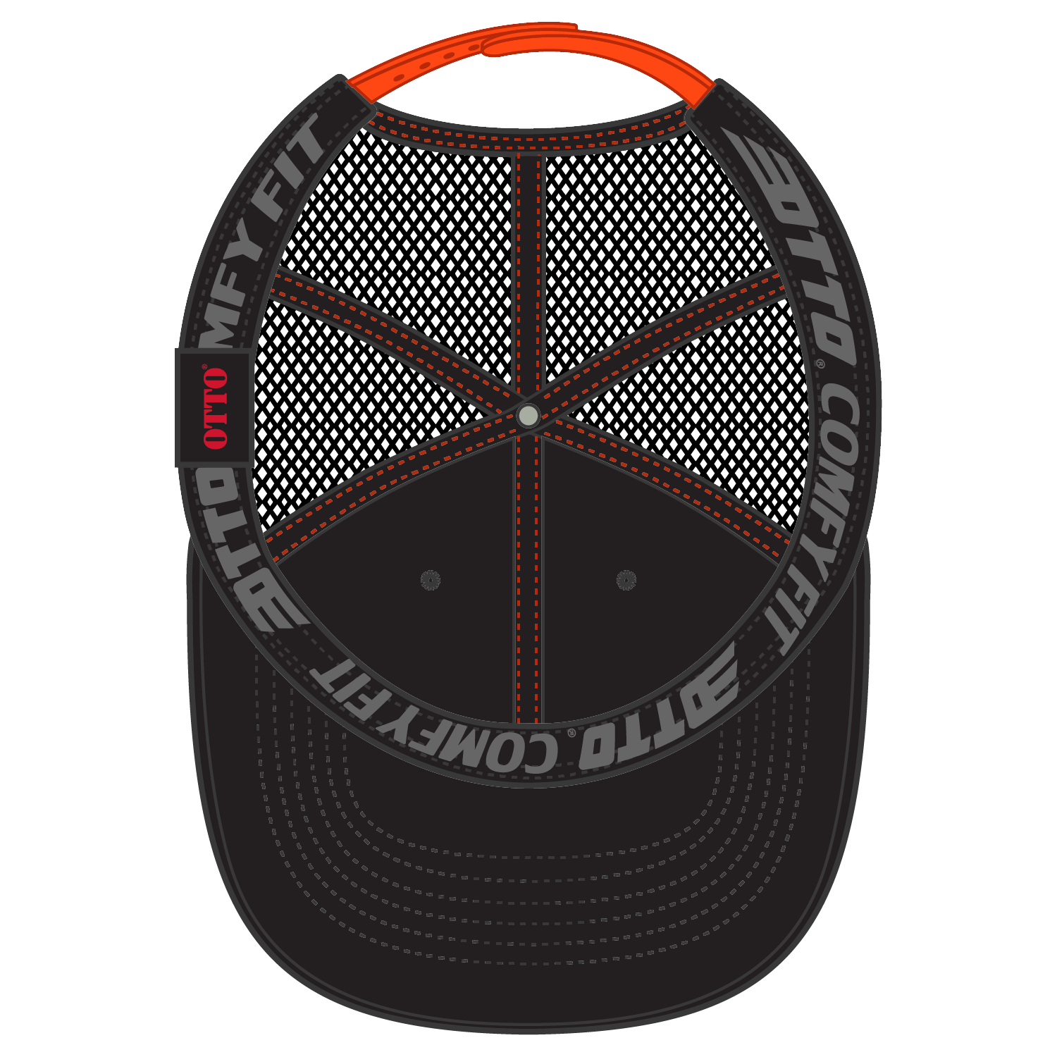OTTO 83-2 "OTTO Comfy Fit" 6 Panel Low Profile Mesh Back Trucker Cap - Blk/Blk/Org