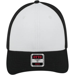 OTTO 135-1230 "OTTO Flex" Fitted 6 Panel Low Profile Mesh Back Trucker Cap - Blk/Wht/Blk