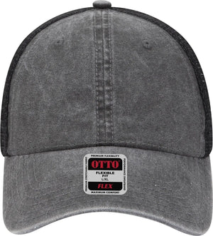 OTTO 169-1264 "OTTO Flex" Fitted 6 Panel Low Profile Mesh Back Trucker Cap - Black