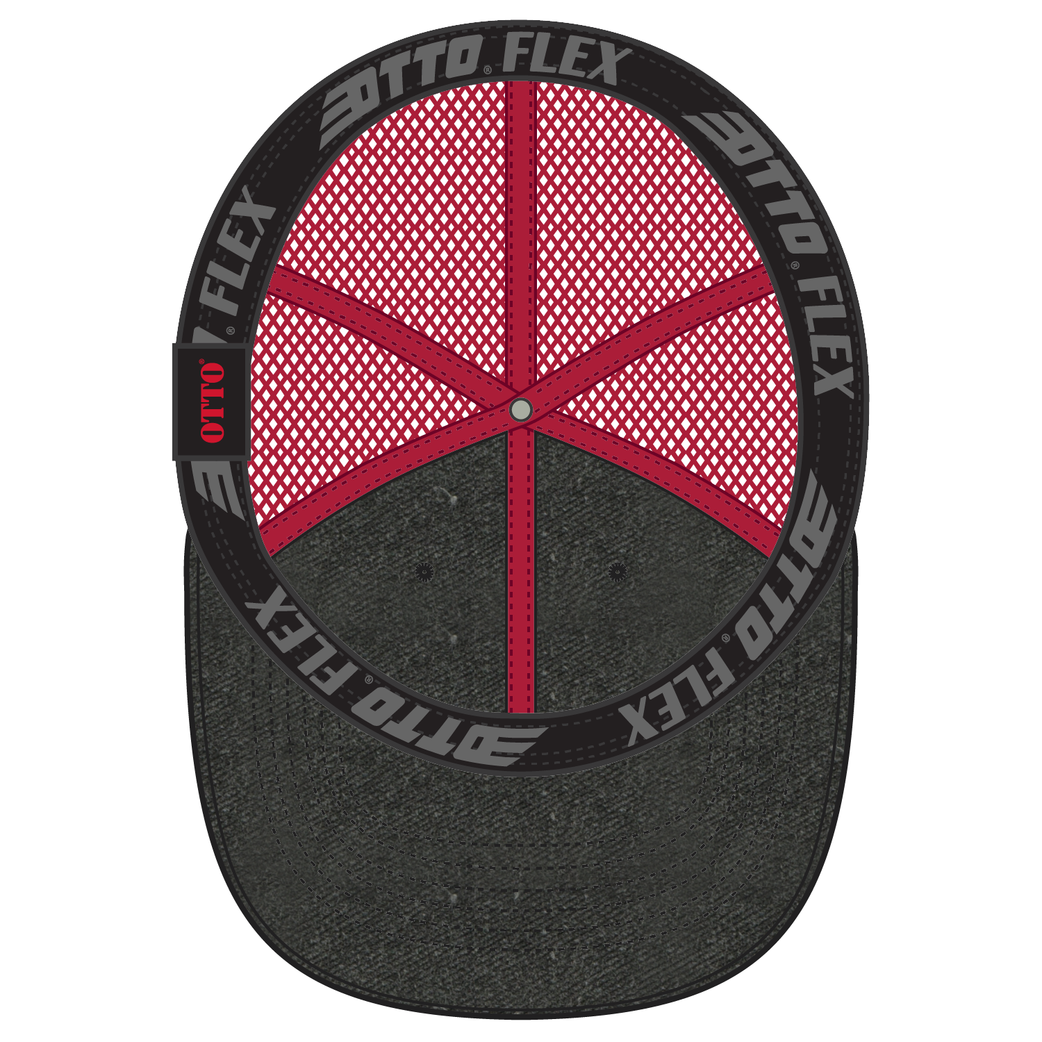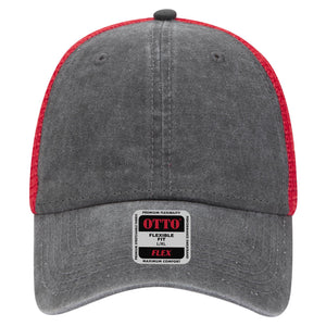 OTTO 169-1264 "OTTO Flex" Fitted 6 Panel Low Profile Mesh Back Trucker Cap - Blk/Blk/Red