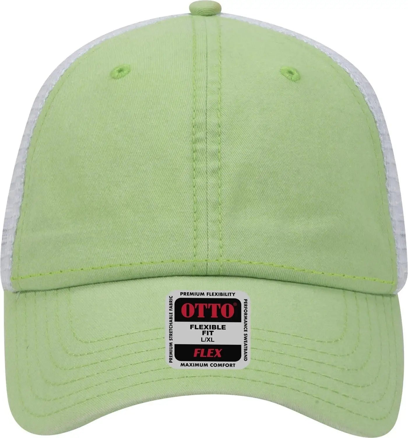 OTTO 169-1264 "OTTO Flex" Fitted 6 Panel Low Profile Mesh Back Trucker Cap - Lime/Lime/Wht