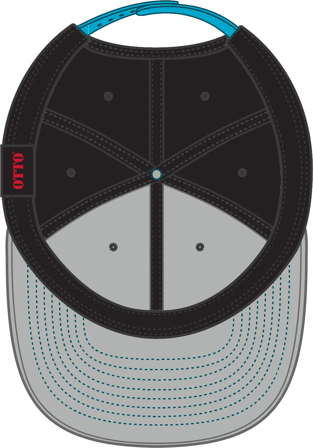 OTTO 125-978 "OTTO Snap" 6 Panel Pro Style Snapback Cap - Aqua/Blk/Blk