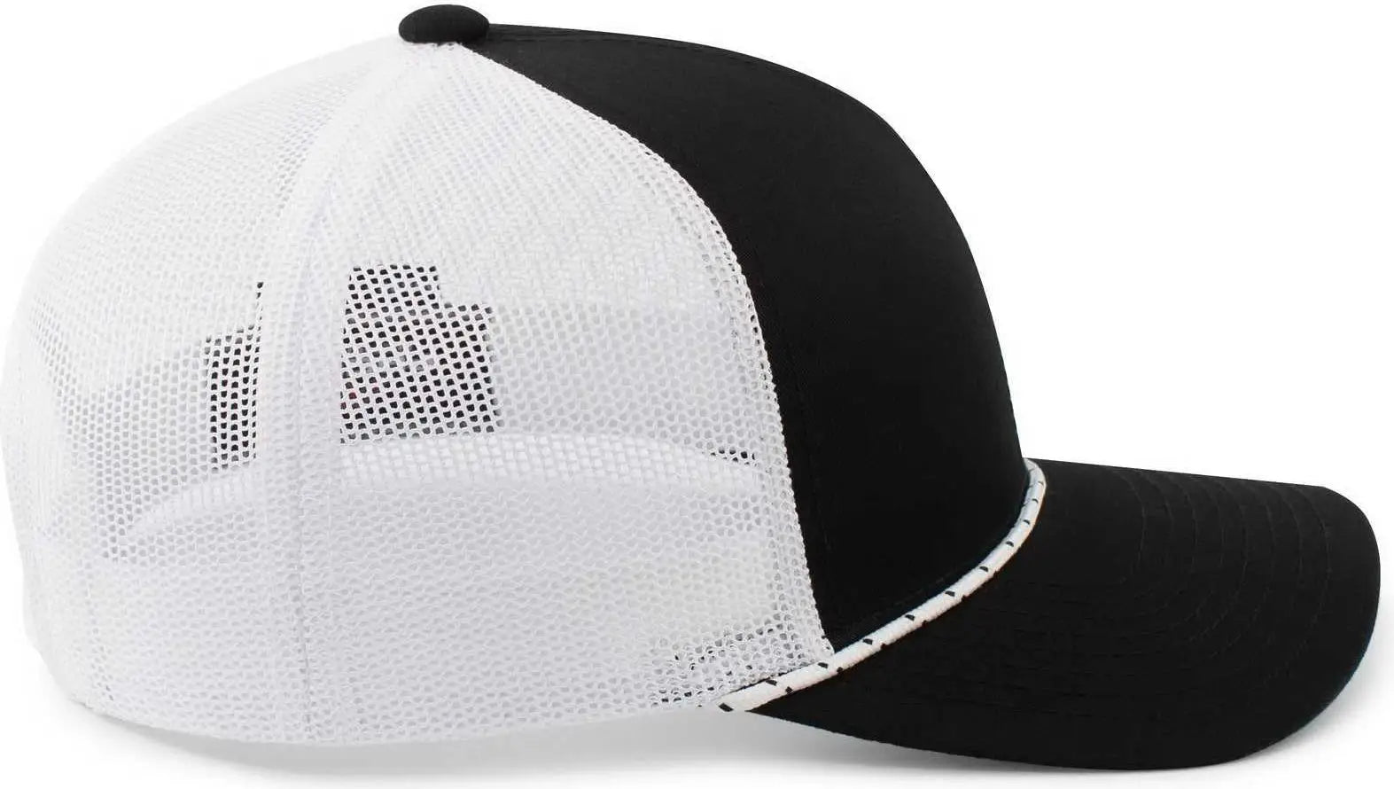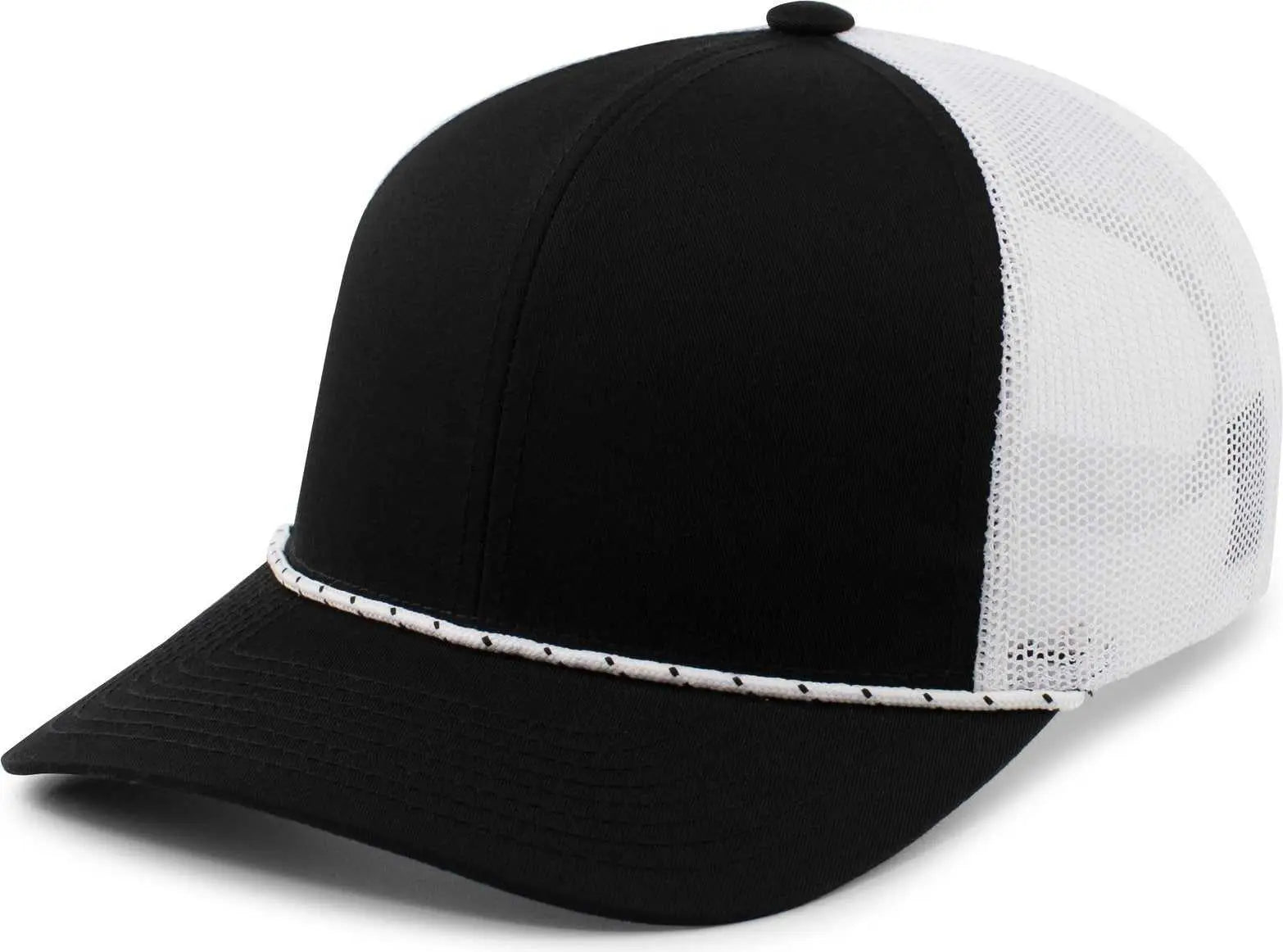 Pacific Headwear 104BR Trucker Snapback Braid Cap - Black White Black