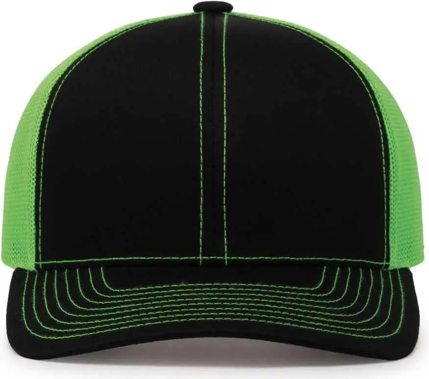 Pacific Headwear 104C Trucker Snapback Cap - Black Neon Green