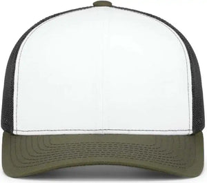 Pacific Headwear 104S Contrast Stitch Trucker Snapback - White Light Charcoal Moss