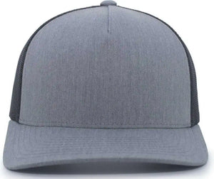 Pacific Headwear 105C 5-Panel Trucker Snapback Cap - Heather Grey Lt Charcoal