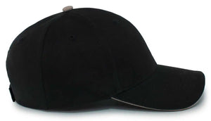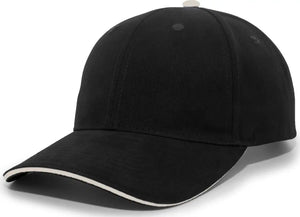 Pacific Headwear 121C Brushed Cotton Sandwich Visor Hook-and-Loop Cap - Black Khaki