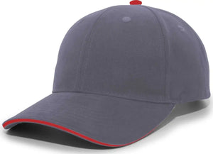 Pacific Headwear 121C Brushed Cotton Sandwich Visor Hook-and-Loop Cap - Graphite Red