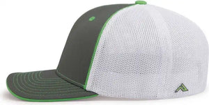 Pacific Headwear 404M Trucker Flexfit Cap - Graphite White Neon Green