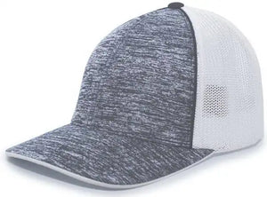 Pacific Headwear 406F Aggressive Heather Trucker Flexfit Cap - Graphite Heather White